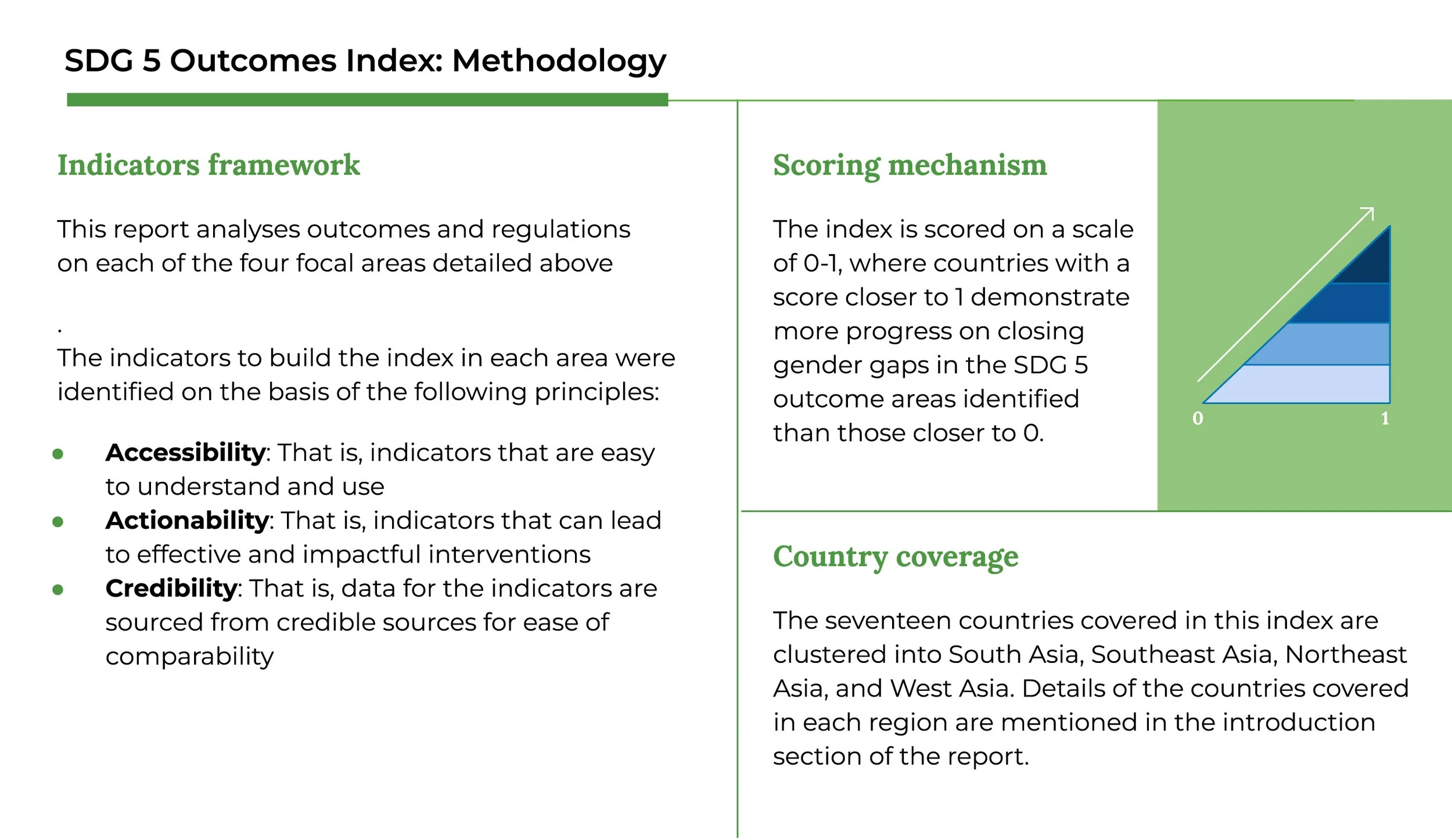 Developed an outcomes index for Sustainable Development Goal 5 Outcomes across multiple countries and thematic areas